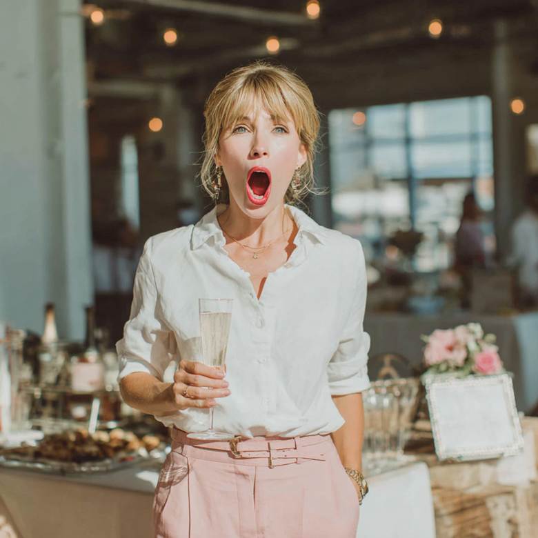 “She tripped when her heel broke on the cobblestone driveway and fell into the fountain! Full splash. Her hair, dress, and makeup—ruined!”