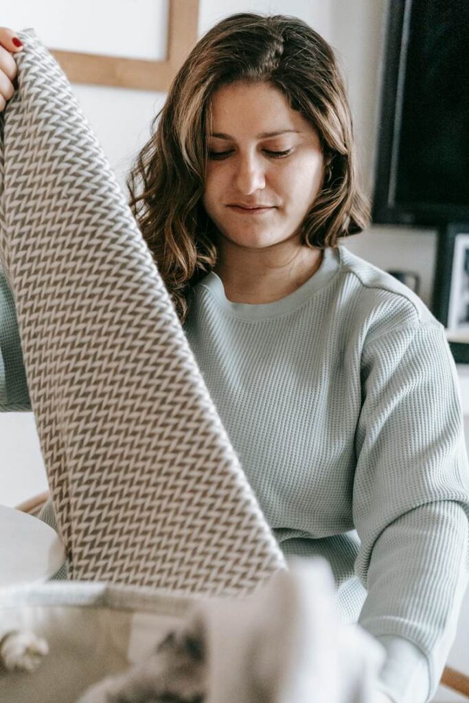 A woman folding laundry