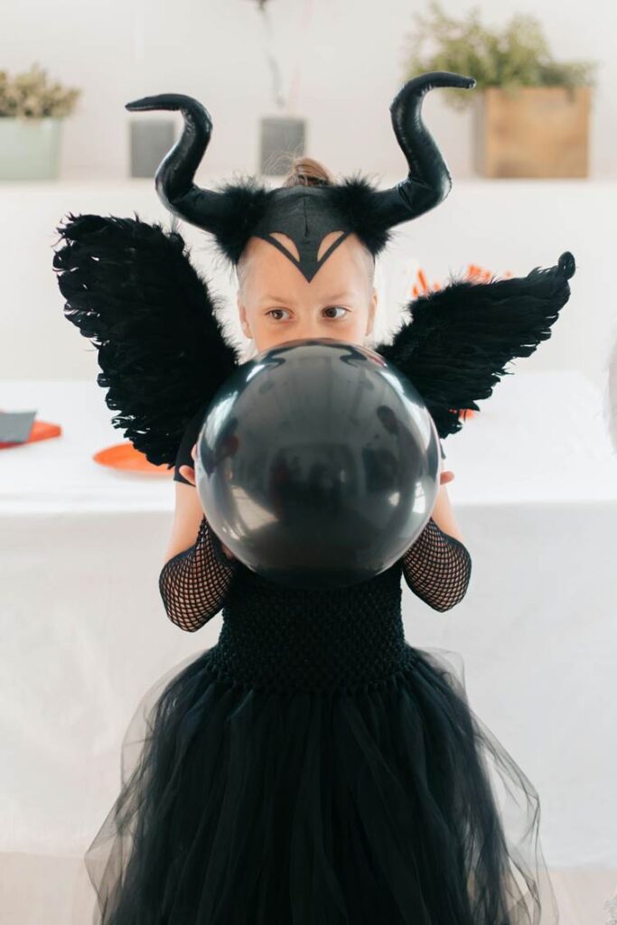 A young girl wearing a black Halloween costume and holding a balloon | Source: Pexels