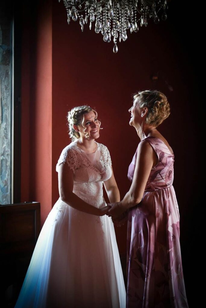 A bride holding a senior woman’s hand and smiling | Source: Pexels