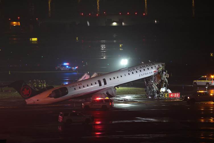 Another view of the aftermath of the Air Canada plane incident on March 23, 2026. | Source: Getty Images