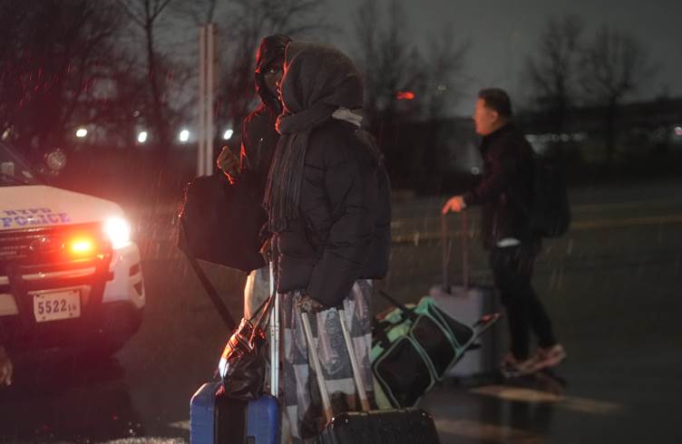 Passengers wait outside Terminal B at LaGuardia Airport following its closure after a deadly runway collision in New York City in March 2026. | Source: Getty Images