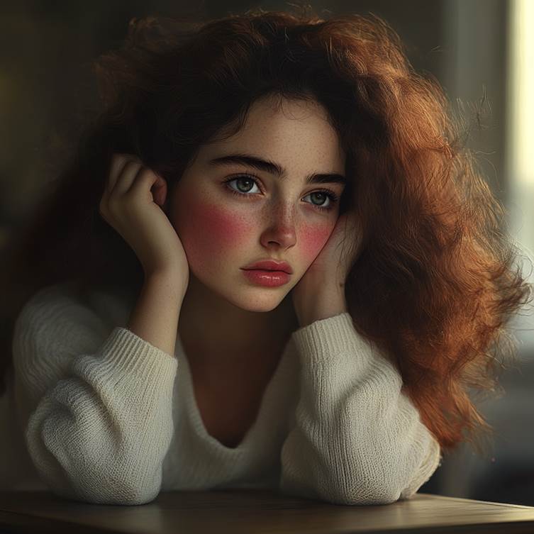 A sad woman leaning on a table | Source: Midjourney