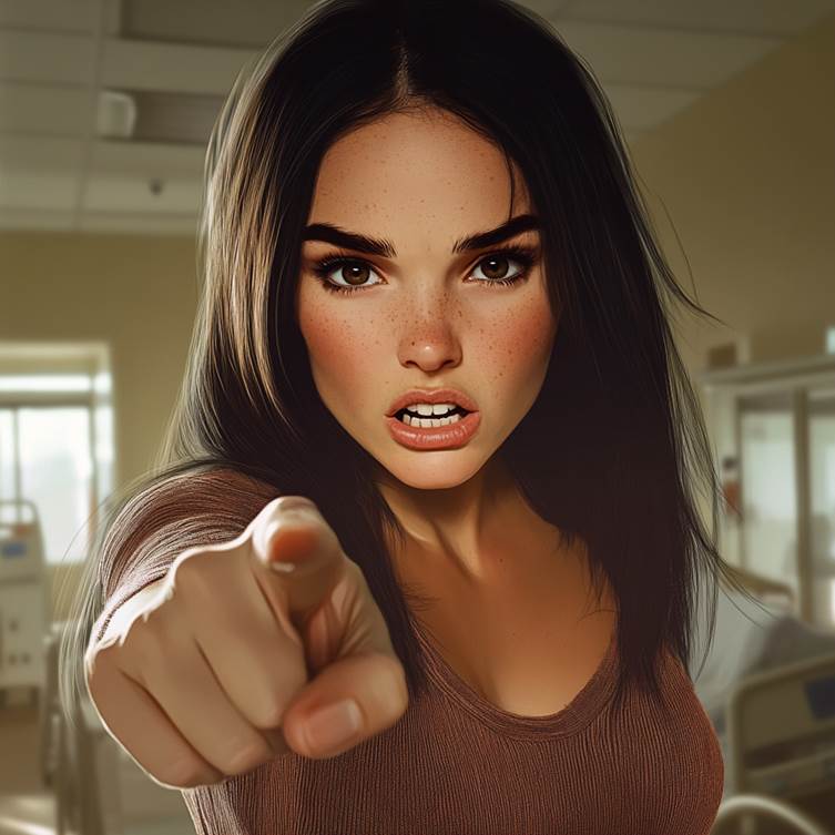 A woman pointing a finger | Source: Midjourney